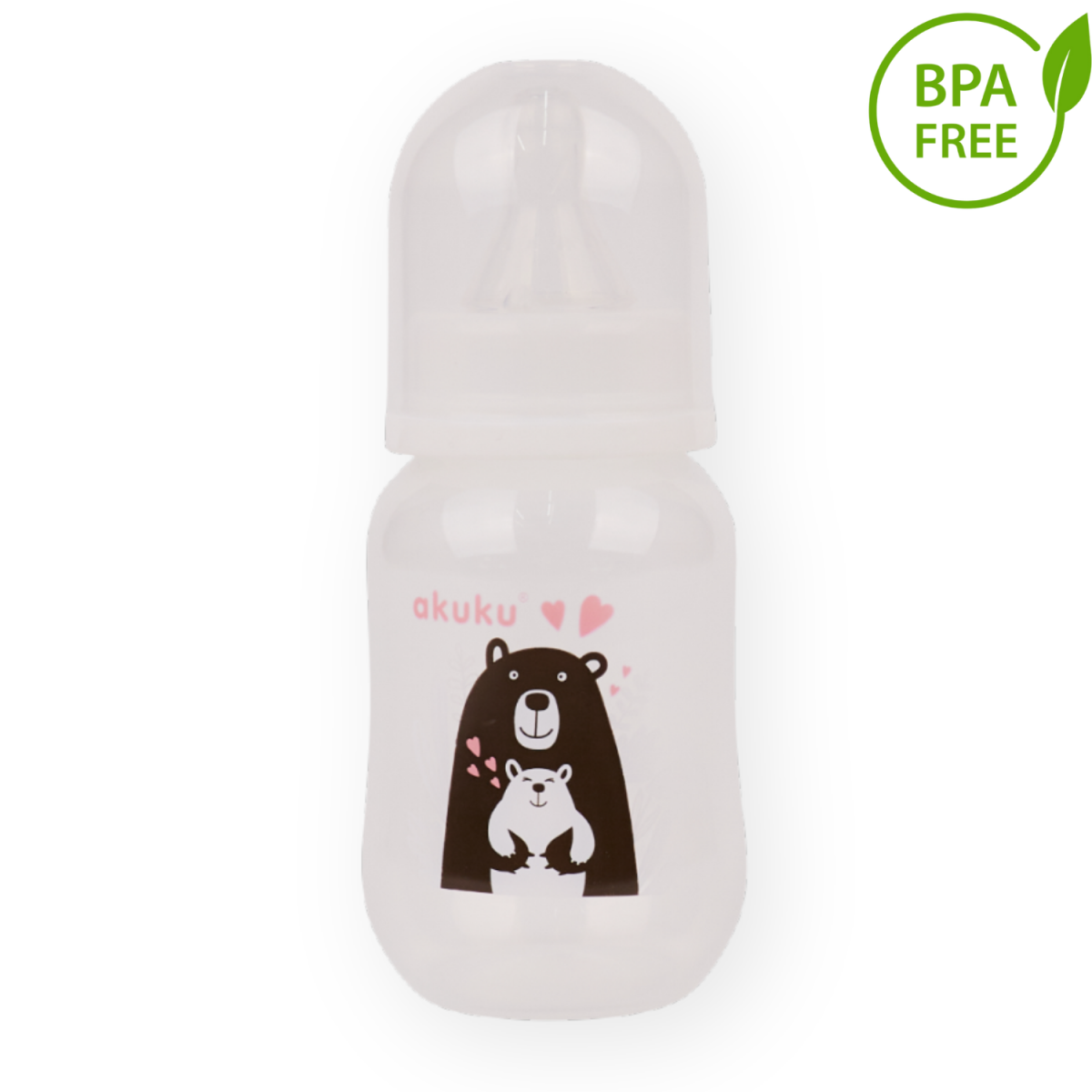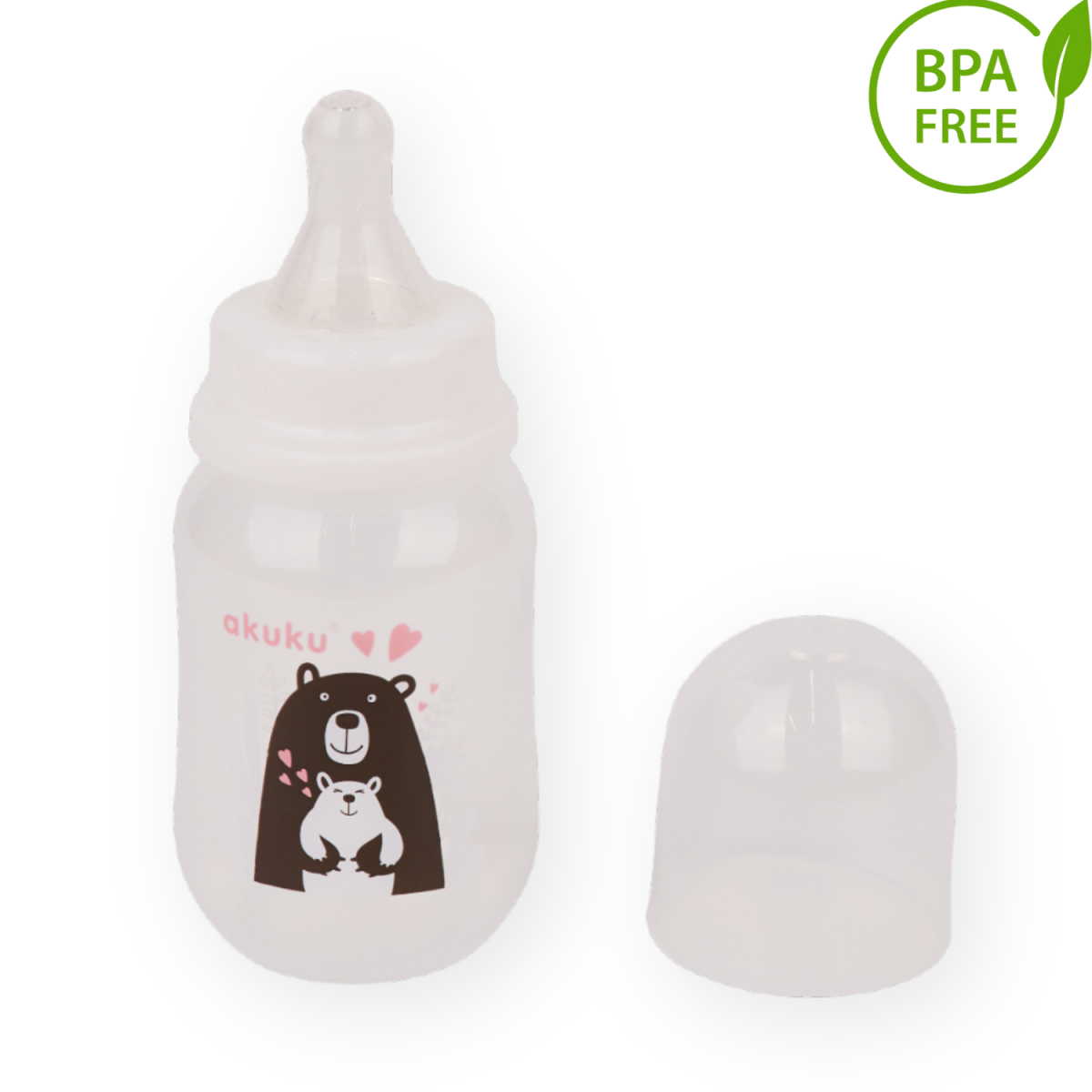Biberonul este realizat din polipropilena si este BPA Free, ceea ce il face potrivit pentru utilizarea zilnica. Materialul este rezistent, usor de curatat si simplu de sterilizat. In plus, capacitatea de 125 ml il face potrivit pentru nou-nascuti si bebelusi mici, iar produsul este recomandat de la 0+ luni. Aceste caracteristici sunt mentionate atat in descrierea pe care ai furnizat-o, cat si pe pagini similare pentru acest model Akuku.