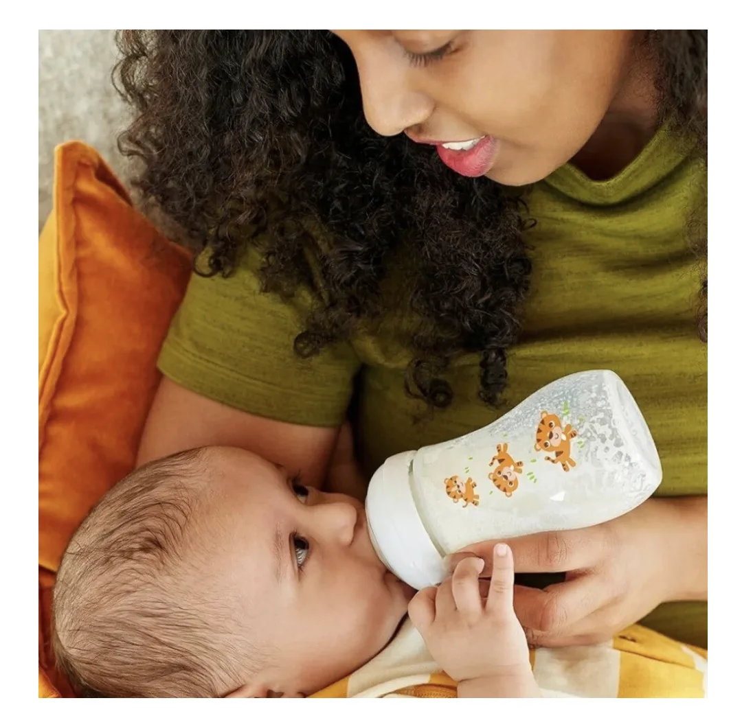 Decorat cu tigri jucăuși, biberonul adaugă un strop de veselie fiecărei mese.