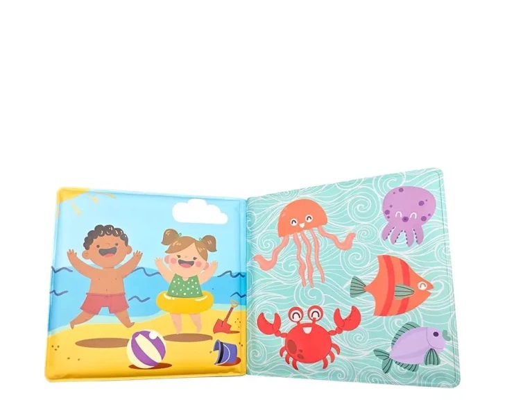 Produsul este gandit pentru stilul de joaca al celor mici. Este rezistent la muscaturi, aruncari, intinderi si framantari, ceea ce il face potrivit pentru utilizare zilnica. Cartea are 10 pagini si poate fi folosita cu usurinta in cada, dar si in afara ei, ca jucarie simpla de explorare.