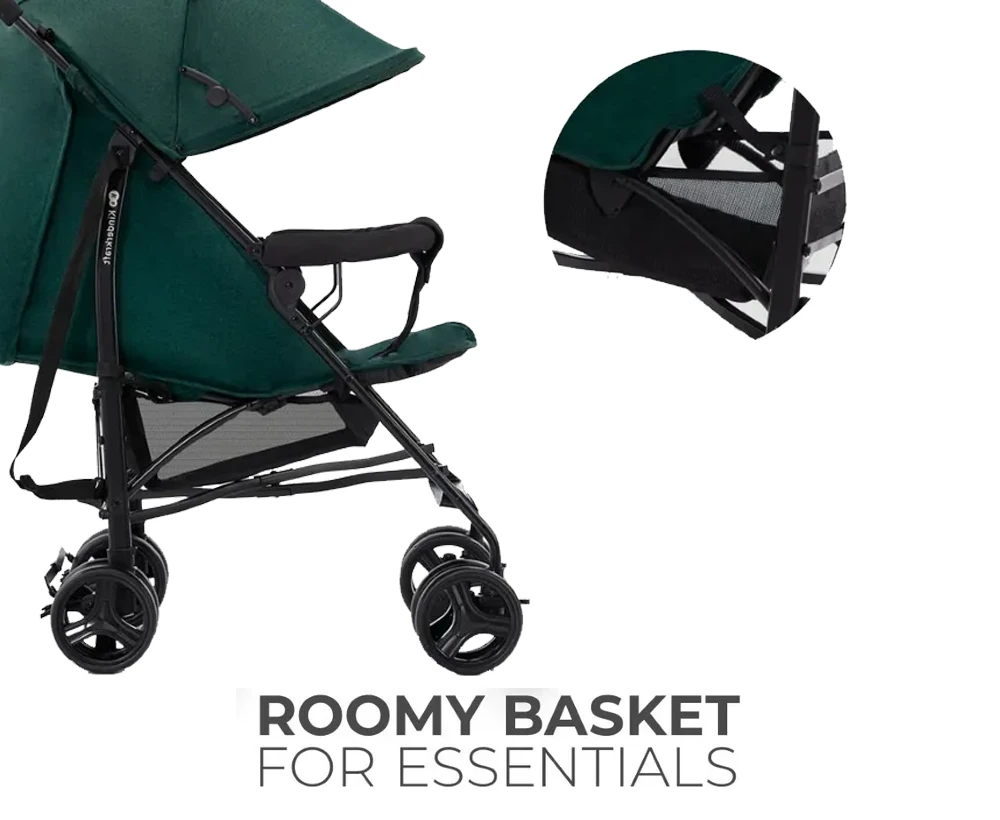 Sub carucior se afla un cos incapator cu o capacitate de incarcare de pana la 2 kg. Puteti pune acolo atat mici cumparaturi, cat si accesorii necesare in timpul unei plimbari, precum servetele umede, scutecele tetra sau jucarii.