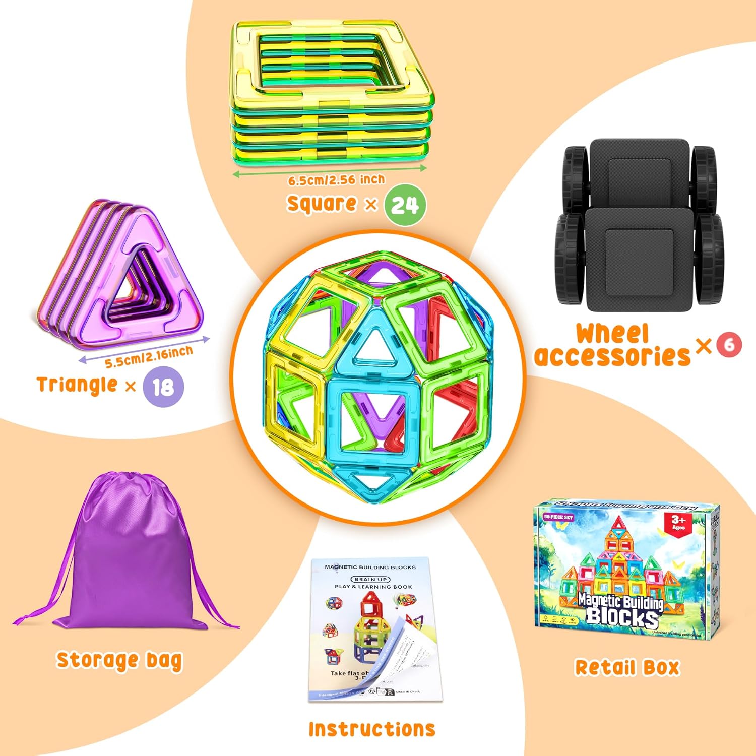 Magnetii sunt mai puternici, iar constructiile sunt mai stabile. Modelele nu se prabusesc usor. Marginile sunt rotunjite si netede. Piesele sunt potrivite pentru copii 3 ani+. Sunt lavabile, pentru joaca mai igienica.