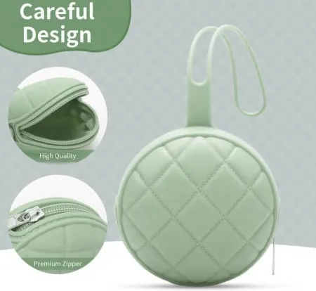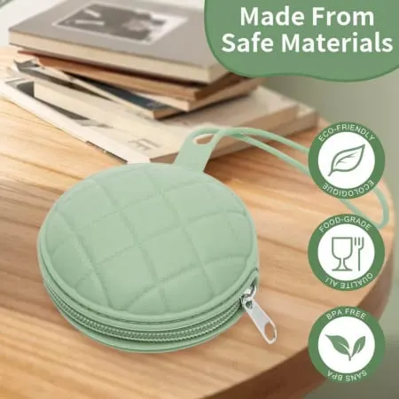 Cutie pentru suzeta ofera parintilor o solutie sigura si sanatoasa pentru pastrarea suzetei copilului. Fabricata din silicon 100% alimentar, moale si elastic, cutia a trecut testele CPSC si reduce riscul de leziuni la nivelul gurii. Dimensiunile sunt atent concepute pentru a preveni riscul de sufocare, asigurand protectie completa micutului.