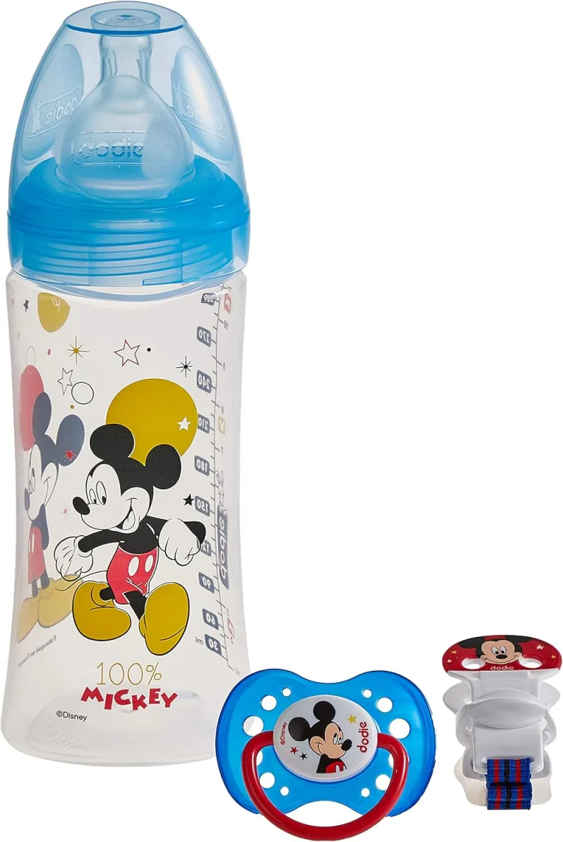Dodie Set Micky Mouse este alegerea ideala pentru parintii care isi doresc un set complet si sigur pentru hranirea si linistirea bebelusului. Inspirat din lumea Disney, setul imbina functionalitatea cu un design vesel, perfect pentru micutii fani Mickey Mouse.