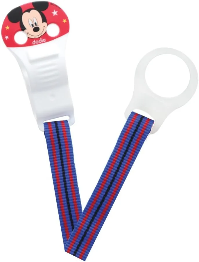 Culoarea si modelul cu Mickey Mouse aduc un plus de bucurie si culoare in rutina zilnica. Lantul pentru suzeta previne pierderea acesteia, pastrand igiena si confortul copilului.