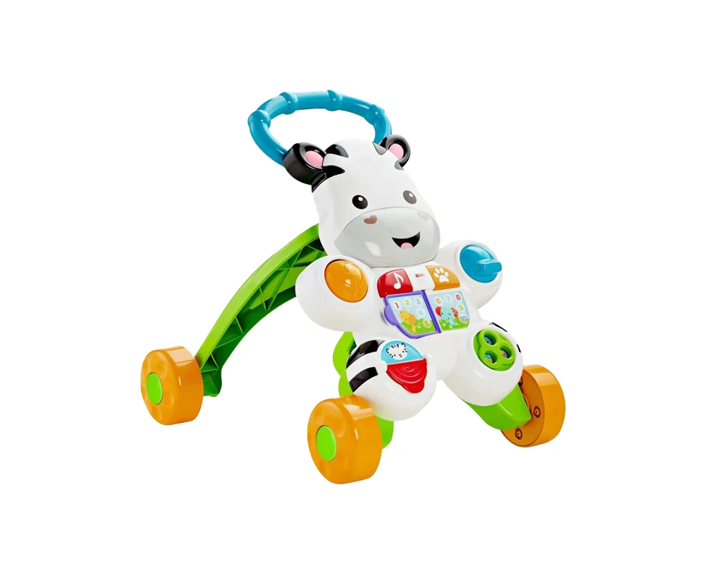 Premergatorul Fisher-Price Zebra Baby Walker este un insotitor timpuriu excelent pentru bebelusi, creat ca micutul tau sa invete cuvinte simple si sa faca primii pasi in siguranta. Jucaria muzicala zebra ofera multe oportunitati de joaca si descoperire chiar si atunci cand copilul sta asezat.