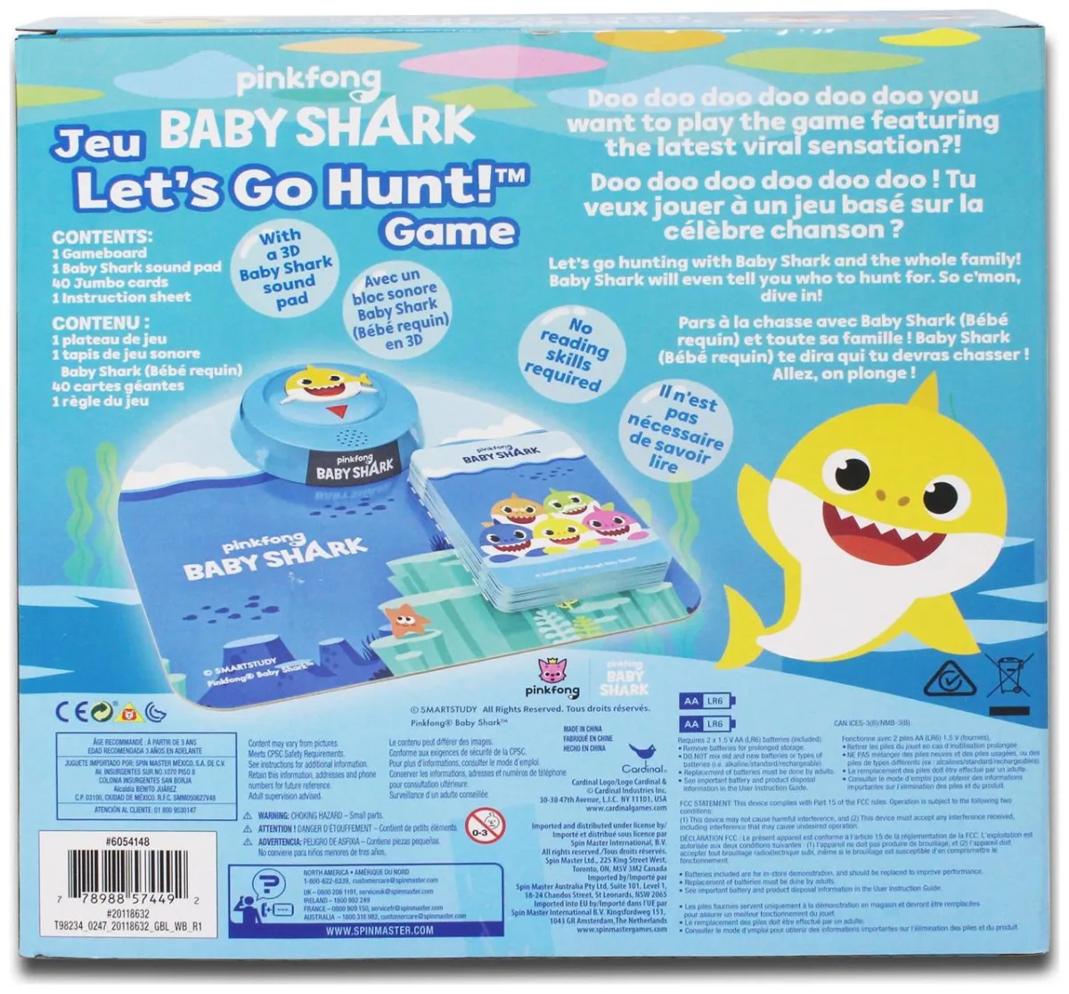 Fiecare jucator trebuie sa gaseasca toti membrii familiei Baby Shark pe cartile ilustrate. Primul care aduna 3 seturi castiga! O partida dureaza aproximativ 15-20 de minute – perfect pentru serile in familie, fara ecrane si fara plictiseala.