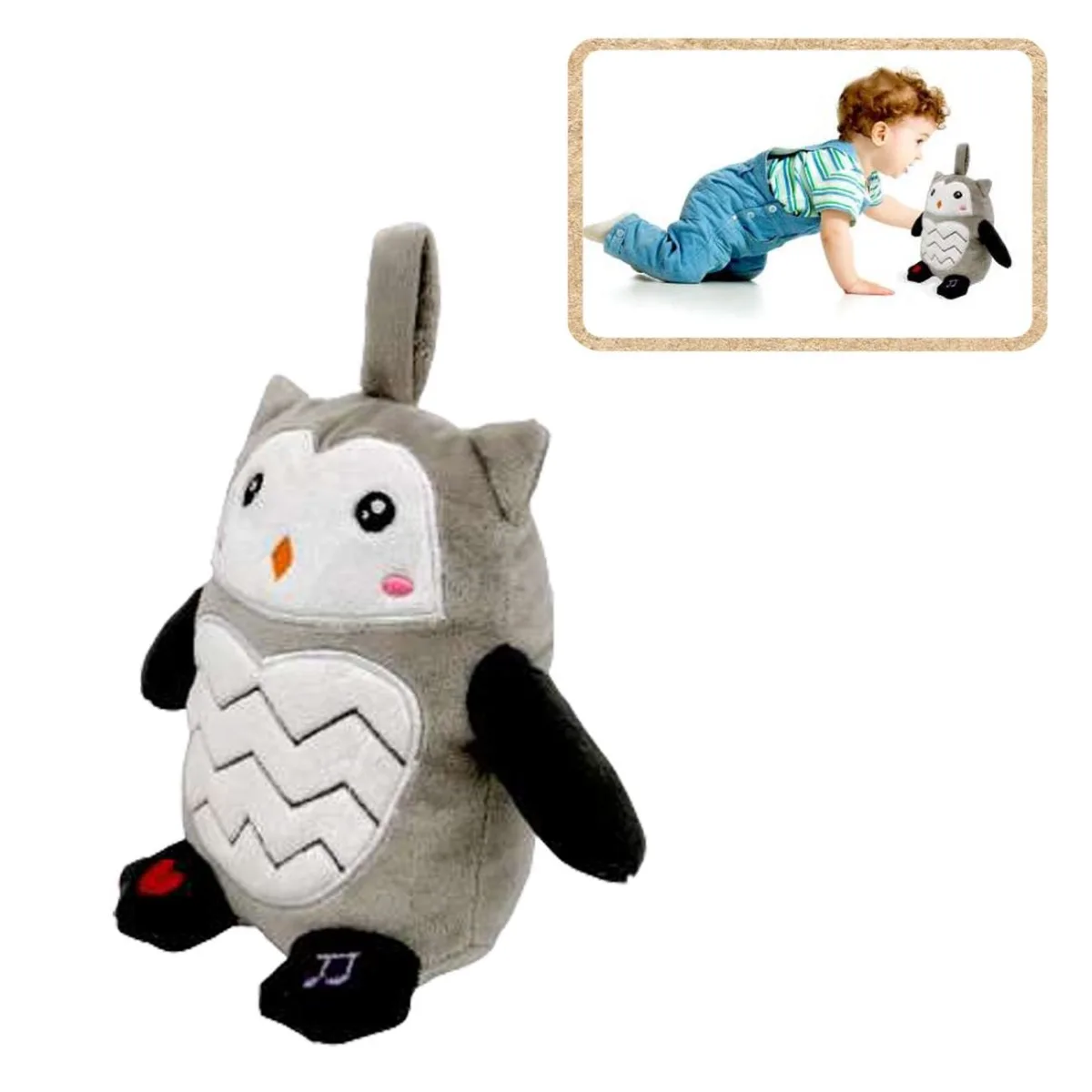 Prin intermediul sunetelor si melodiilor in limba romana, aceasta jucarie ajuta la stimularea abilitatilor senzoriale si auditive ale copilului. Bufnita ii ofera copilului un mediu de invatare placut si captivant, incurajand dezvoltarea limbajului si a empatiei prin tonurile blande si povestile dulci. Este perfecta pentru a-l ajuta pe cel mic sa se familiarizeze cu sunetele naturii si muzica clasica.