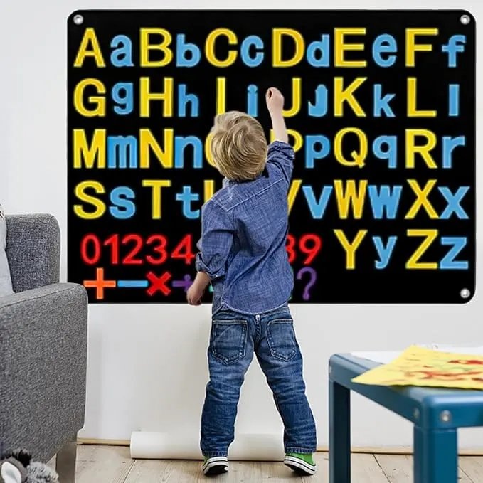 Planșa poate fi prinsa cu usurinta pe perete sau folosita pe podea, transformand orice spatiu intr-un mic colt educativ. Este un obiect decorativ util, ideal pentru camerele copiilor, salile de clasa sau zonele de joaca. Designul colorat si tematica alfabetului ii atrage pe cei mici si ii tine ocupati intr-un mod constructiv.