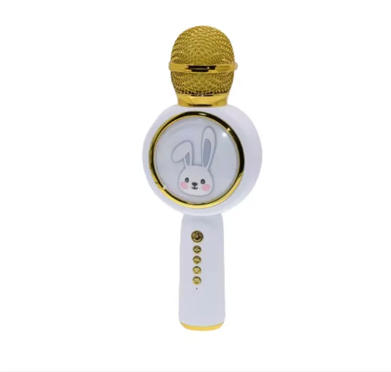 • Design Atragator: In nuante de alb si auriu, microfonul are un aspect jucaus cu un design de iepuras, fiind adorabil pentru copii.