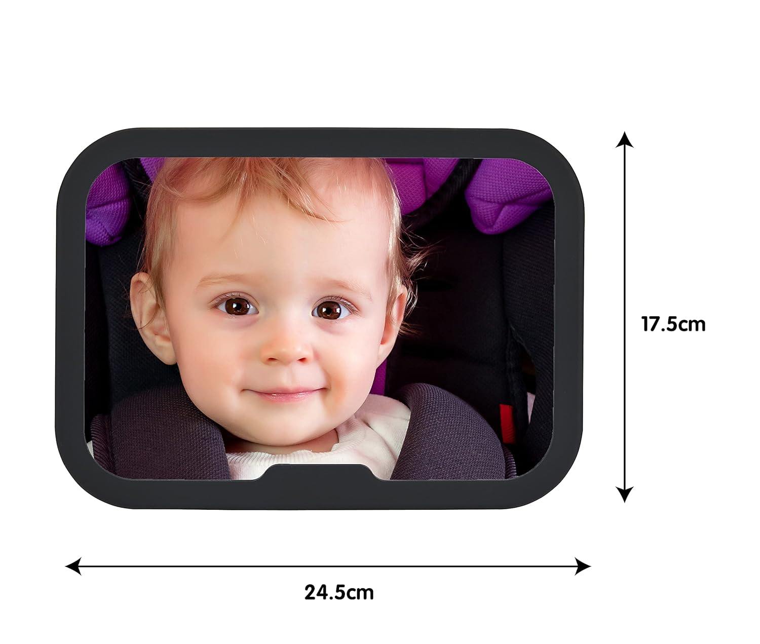 Forma speciala a oglinzii contribuie la un camp vizual mai larg. Poti vedea mai bine fata copilului si poti observa mai usor ce face in timpul calatoriei.