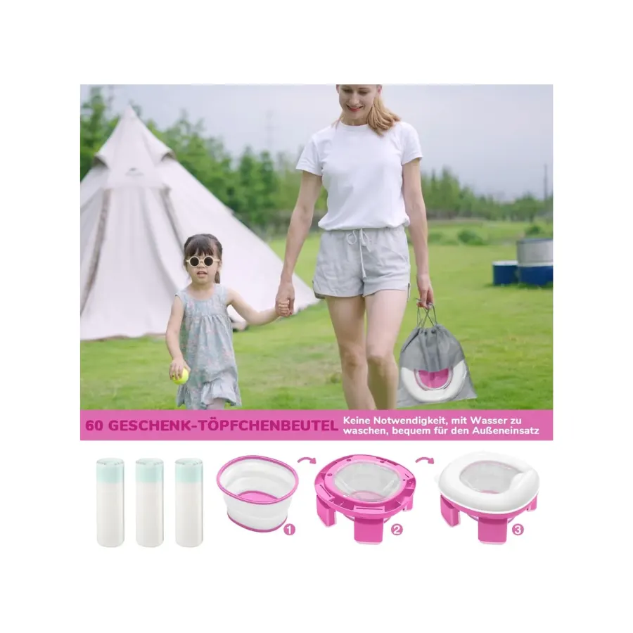 Setul include 60 de saci igienici, care elimina complet nevoia de curatare. Tot ce trebuie sa faci este sa asezi un sac in olita, iar la final sa-l arunci – simplu, curat si rapid. Acest sistem este ideal mai ales pentru folosirea in aer liber sau in spatii fara acces facil la apa.