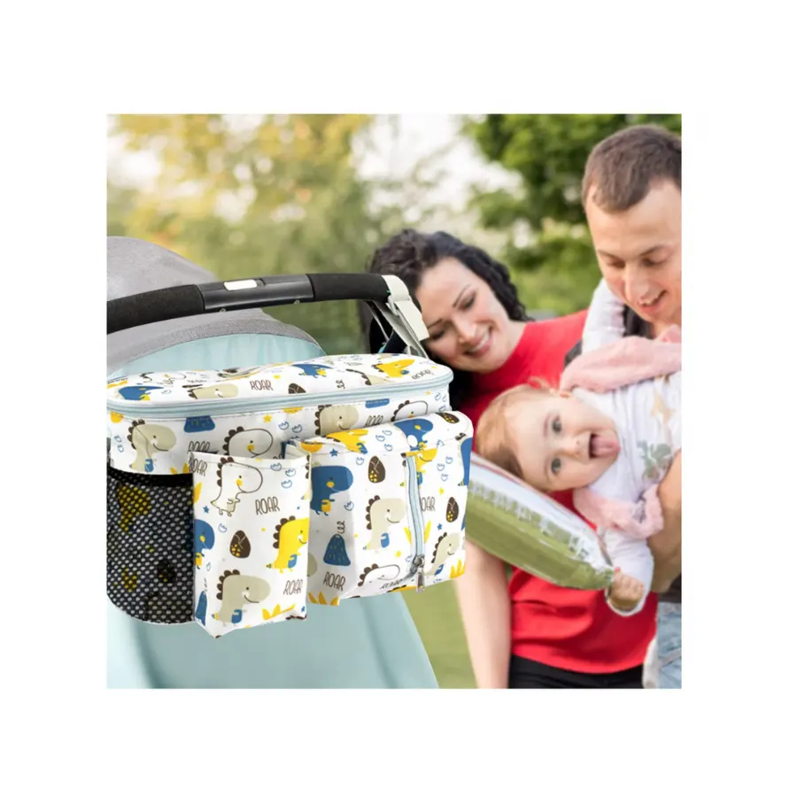 Transformă fiecare plimbare cu bebelușul într-o experiență mai ușoară și mai organizată cu acest organizator pentru carucior practic și colorat, cu design jucăuș cu dinozauri. Proiectat special pentru a fi atașat cu ușurință pe mânerul căruciorului sau chiar pe tetiera scaunului auto, acest organizator este ajutorul perfect atunci când ești în mișcare.