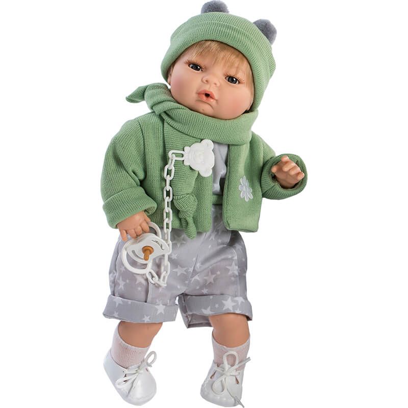 Papusa interactiva Raul cu pulover verde, 42 cm, Berbesa este alegerea ideala pentru copiii care iubesc papusile realiste si jocurile de rol pline de imaginatie.