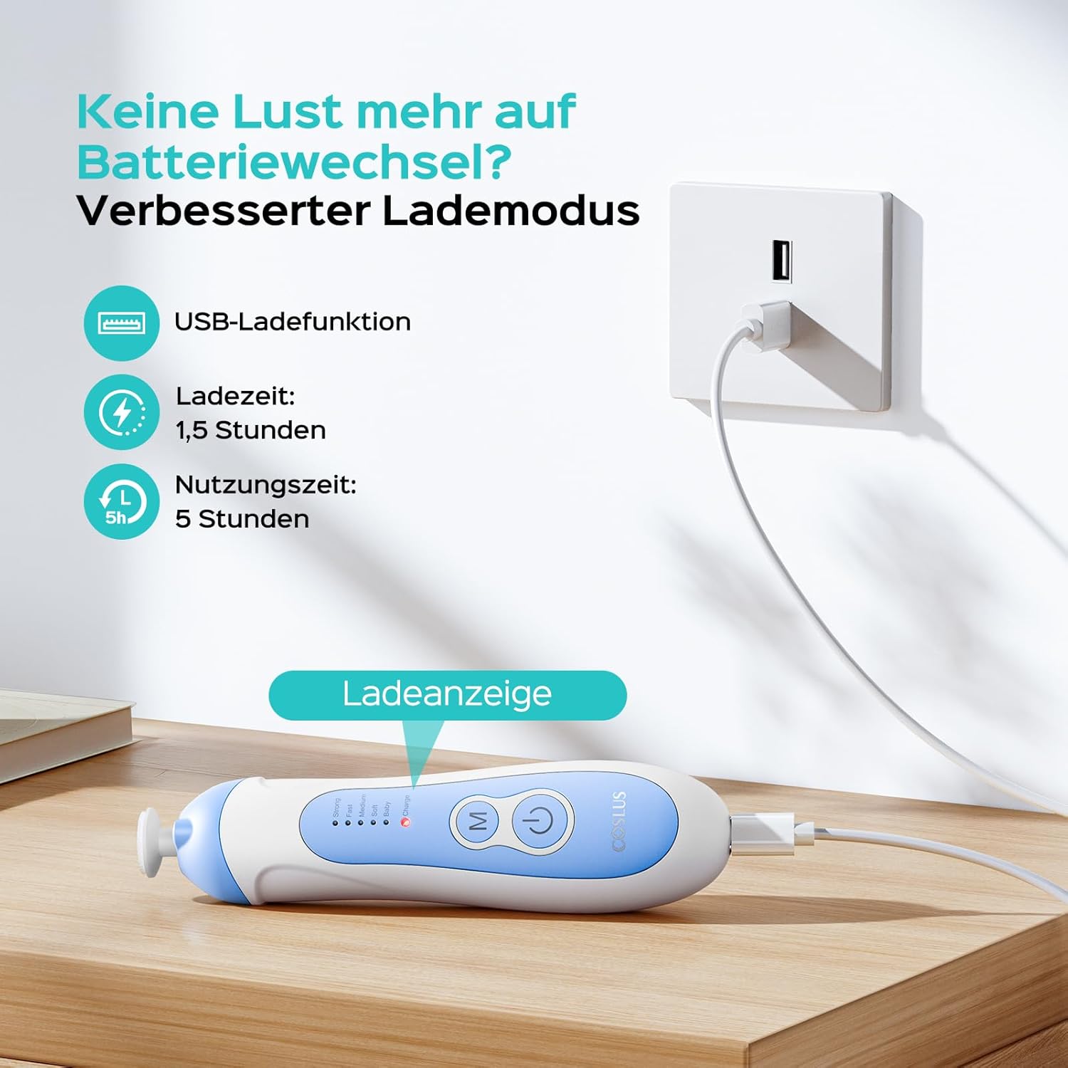 Produsul dispune de 5 trepte de viteza, pentru a putea adapta procesul de pilire in functie de varsta copilului si de sensibilitatea unghiilor. Aceasta functie este foarte utila, deoarece permite o utilizare confortabila atat pentru nou-nascuti, cat si pentru copiii mai mari. Fiecare etapa de crestere poate avea nevoie de o intensitate diferita, iar aceasta pila raspunde foarte bine acestor nevoi.