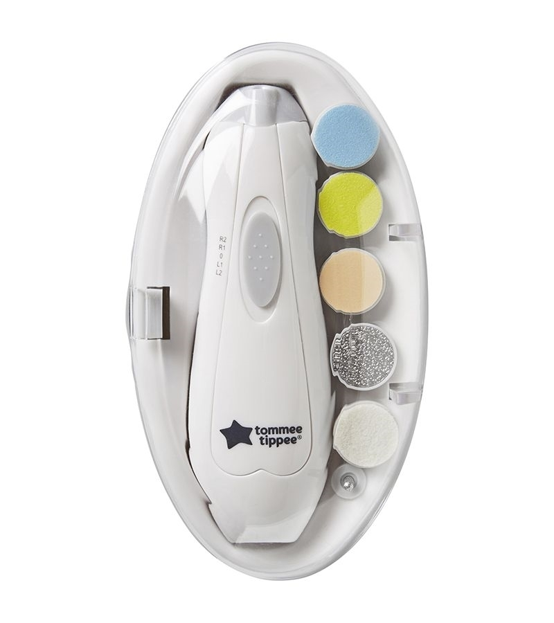 Pila electrica unghii bebelusi Tommee Tippee te ajuta sa ingrijesti unghiile in siguranta, fara foarfeca si fara stres. Este delicata cu pielea. Reduce riscul de zgarieturi. Poate fi folosita inca de la nastere.