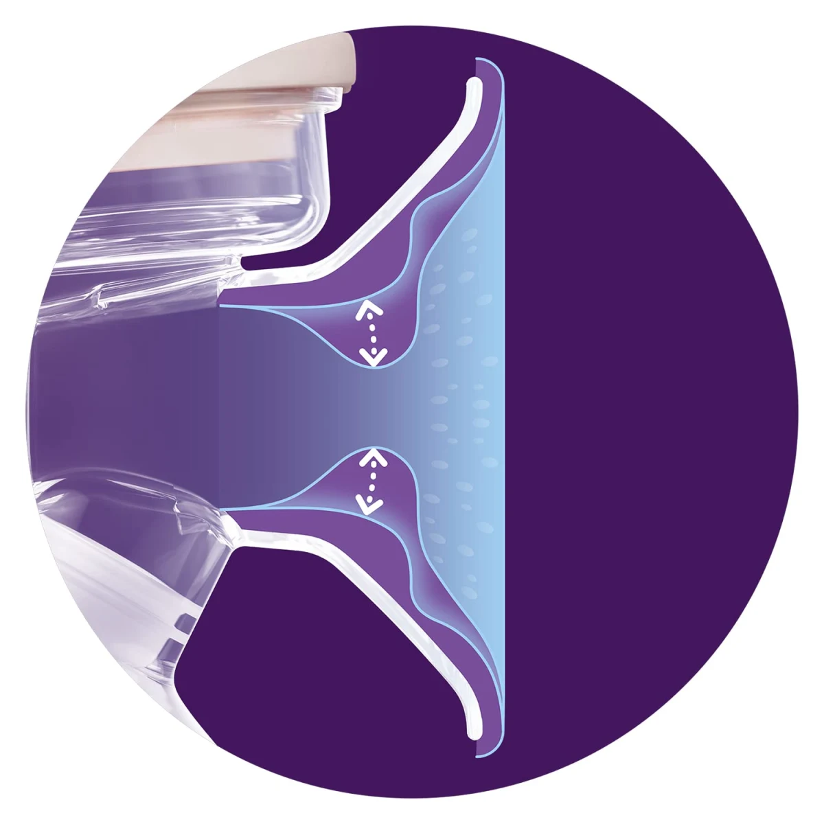 Aceasta Pompa de sani electrica vine cu o pernuta de silicon flexibila, ce se adapteaza in mod natural la 99,98% dintre dimensiunile mameloanelor, pana la 30 mm. Este proiectata pentru a oferi o experienta personalizata, cu 8 niveluri de stimulare si 16 setari de pompare. Functia de memorie retine setarea preferata, pentru o utilizare usoara si rapida.
