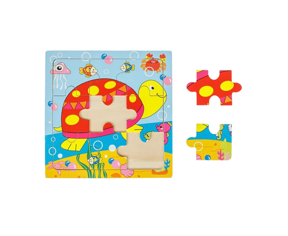 Puzzle din lemn cu 9 piese cu imagine broasca testoasa. Potrivirea pieselor se face cu miscari simple si usor de copiii mici. Va ajuta copilul sa recunoasca culorile, formele, cifrele si sa le combine cu cuvintele corespunzatoare, ajutand la dezvoltarea observarii si a gandirii logice. * AVERTISMENT! Pericol de asfixiere. Nerecomandat copiilor mai mici de 12 luni, contine componente mici ce pot fi inghitite.
