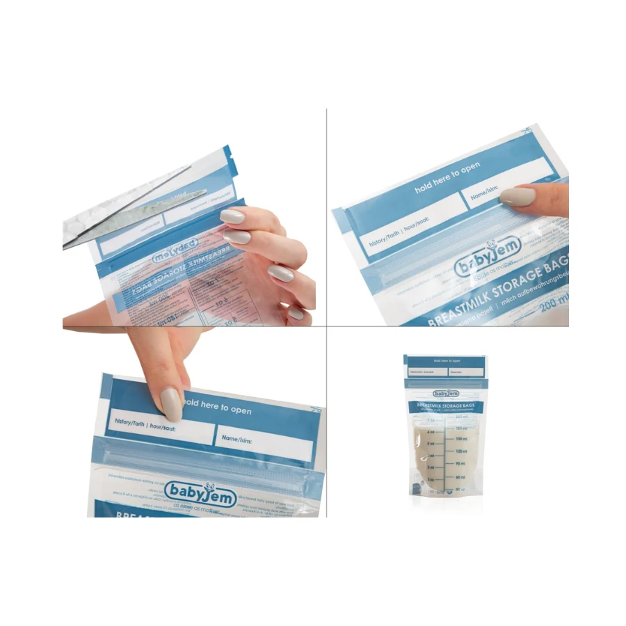 – Capacitate generoasă: Fiecare pungă poate stoca până la 200 ml de lapte matern.