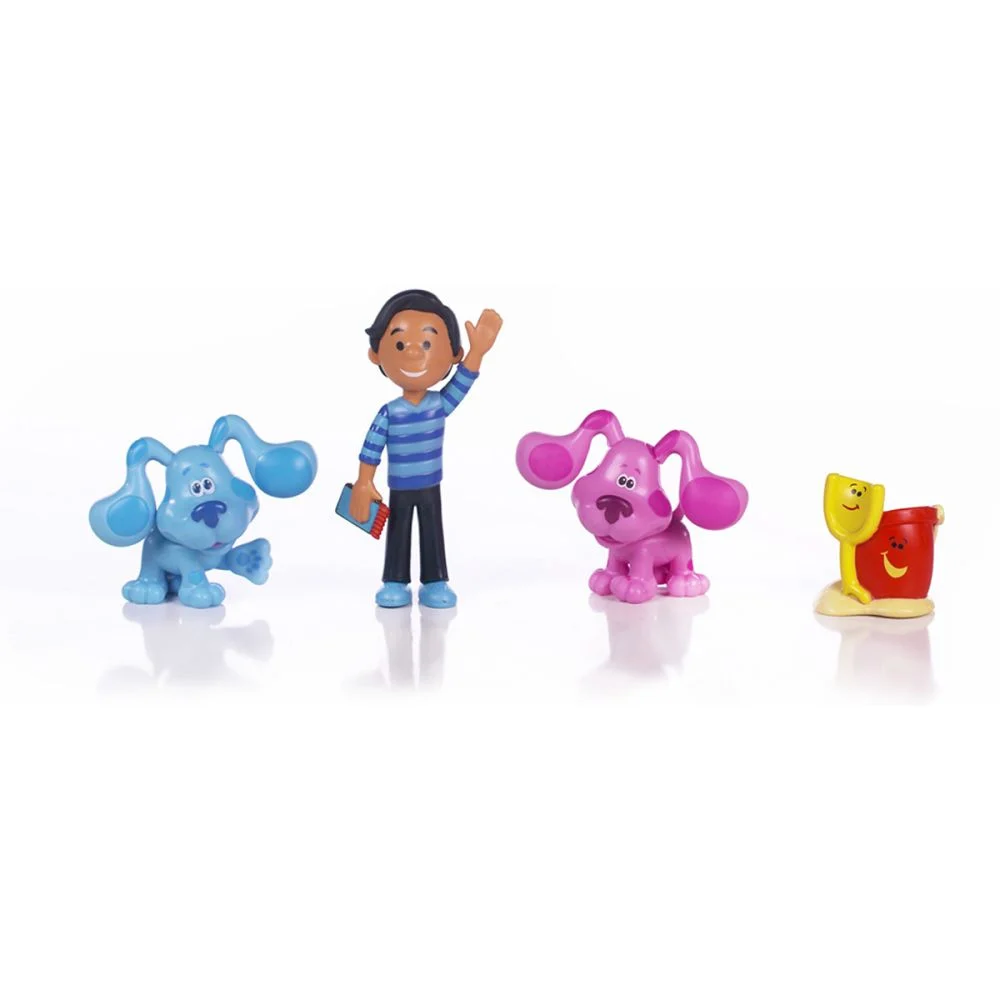 Setul include patru personaje cunoscute: Blue, Magenta, Josh si Shovel & Pail. Fiecare are un look recognoscibil si o postura amuzanta. Josh tine in mana Handy Dandy Notebook, detaliul care completeaza perfect universul Blue’s Clues.
