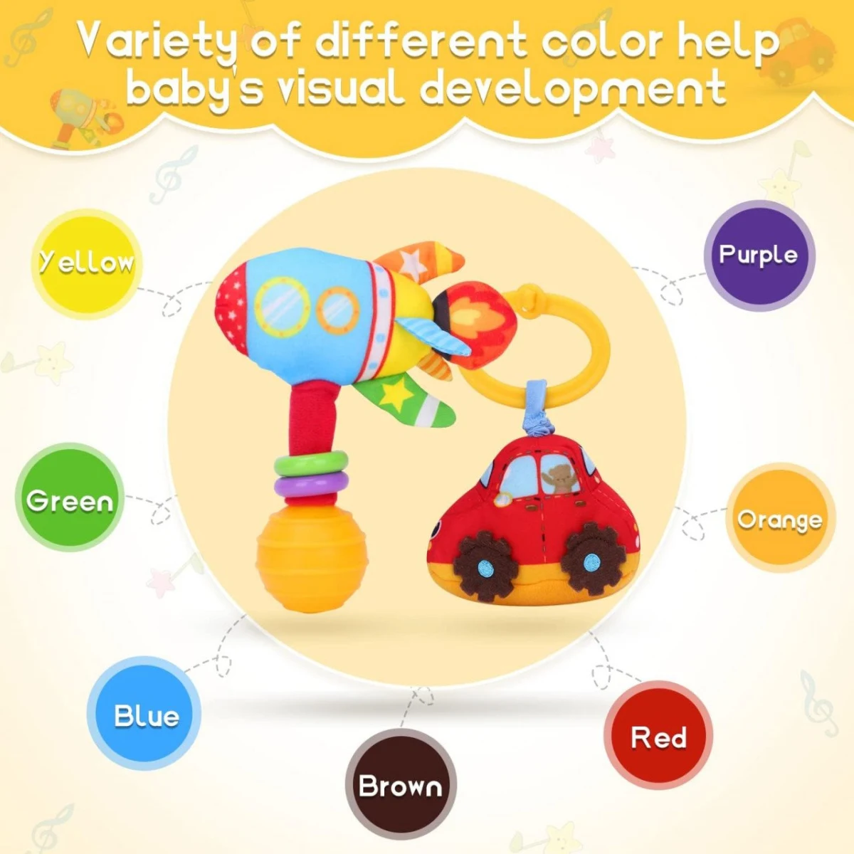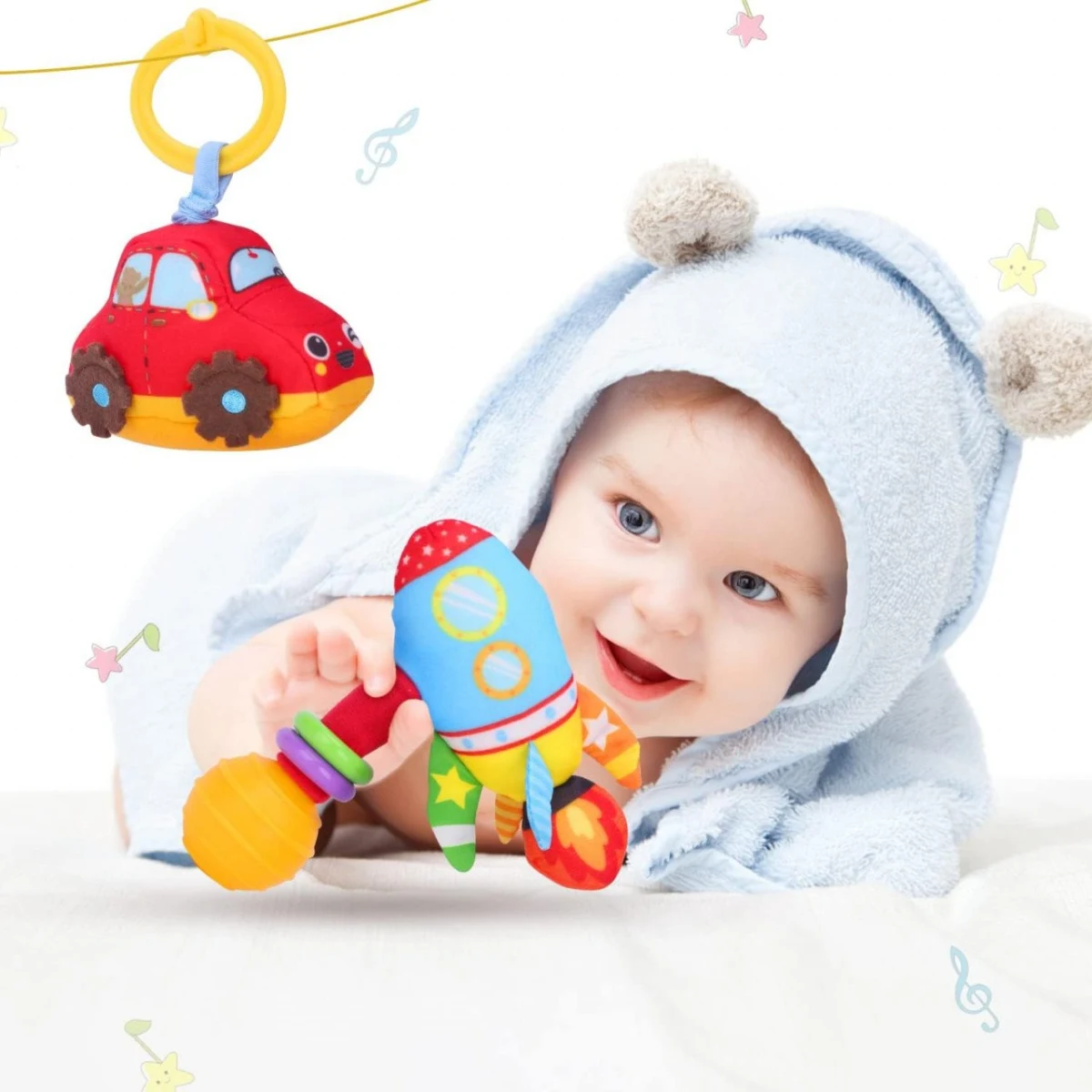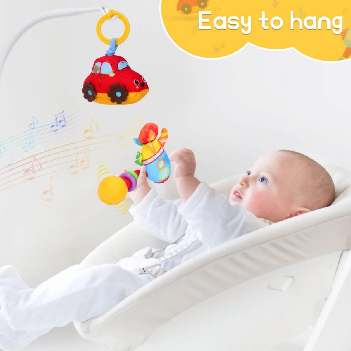 Stimulare senzoriala: dezvolta perceptia vizuala, auditiva si abilitatile motorii fine ale bebelusului.