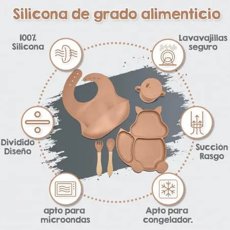 Transforma mesele micutului tau intr-o experienta placuta si organizata cu Setul Vesela Bebelusi Orangu-gu maro, format din 5 piese esentiale, realizate din silicon si lemn, complet sigure si adaptate nevoilor copiilor. Acest set multifunctional este ideal pentru parintii care cauta o solutie practica, estetica si durabila pentru diversificare si alimentatia zilnica.