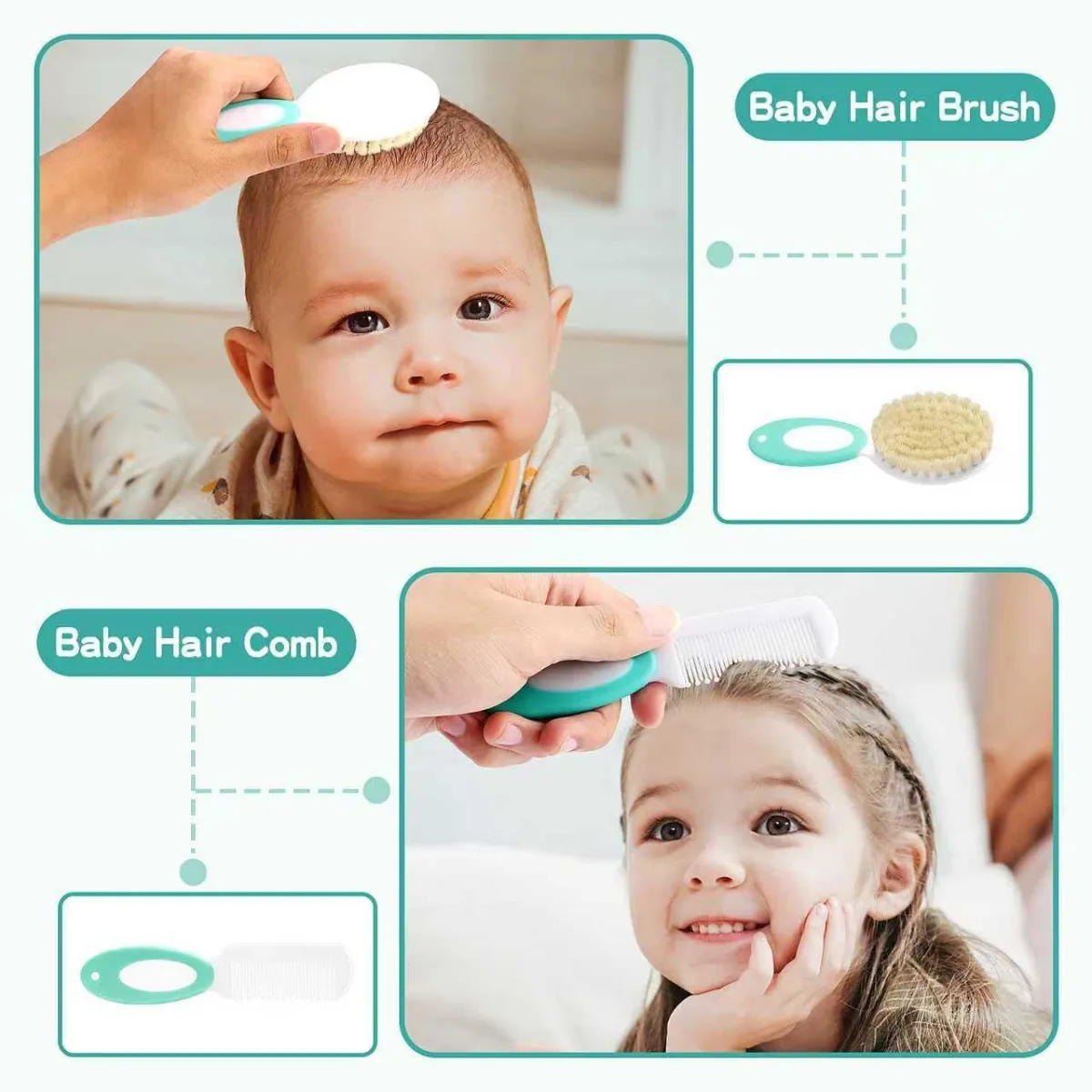 Peria si pieptenele curata delicat scalpul si ajuta la prevenirea cojitelor. Unghiera, pila si forfecuta permit ingrijirea unghiilor fara risc de zgarieturi, iar lamele rotunjite asigura protectie maxima. Accesoriile sunt mici, usoare si perfecte pentru mainile si unghiile fine ale bebelusilor.