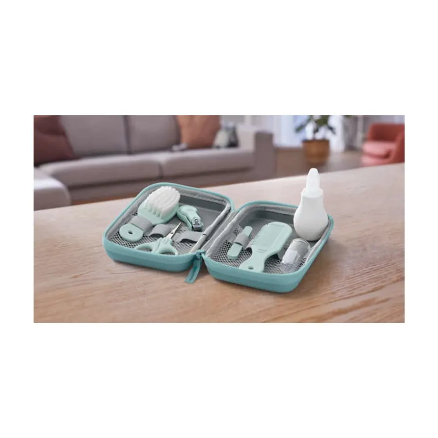 Aspiratorul nazal ajuta la curatarea eficienta a nasului si la eliberarea cailor respiratorii. Contribuind la un somn linistit. Periuta de dinti tip deget este ideala pentru masajul bland al gingiilor. Sau pentru curatarea primilor dintisori. Kitul pentru unghii este special adaptat pentru unghii delicate. Iar accesoriile pentru par ofera o ingrijire blanda si eficienta.