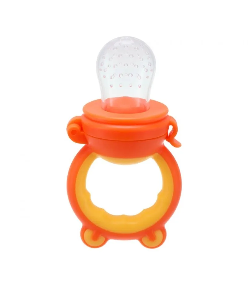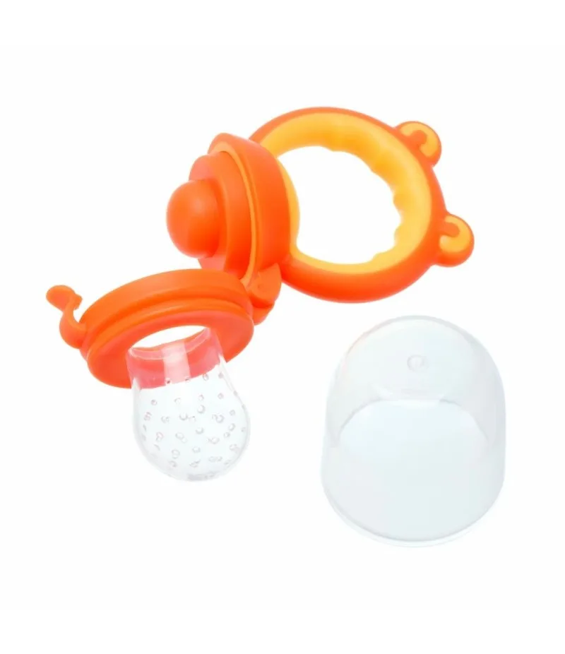 Dispozitivul are o tetina speciala din silicon alimentar, prevazuta cu microperforatii fine. In interior pot fi puse fructe, legume fierte sau gustari moi. Bebelusul poate suge si mesteca in siguranta, fara a inghiti bucati mari. Aceasta metoda reduce riscul de inec si face diversificarea mai placuta pentru cei mici.