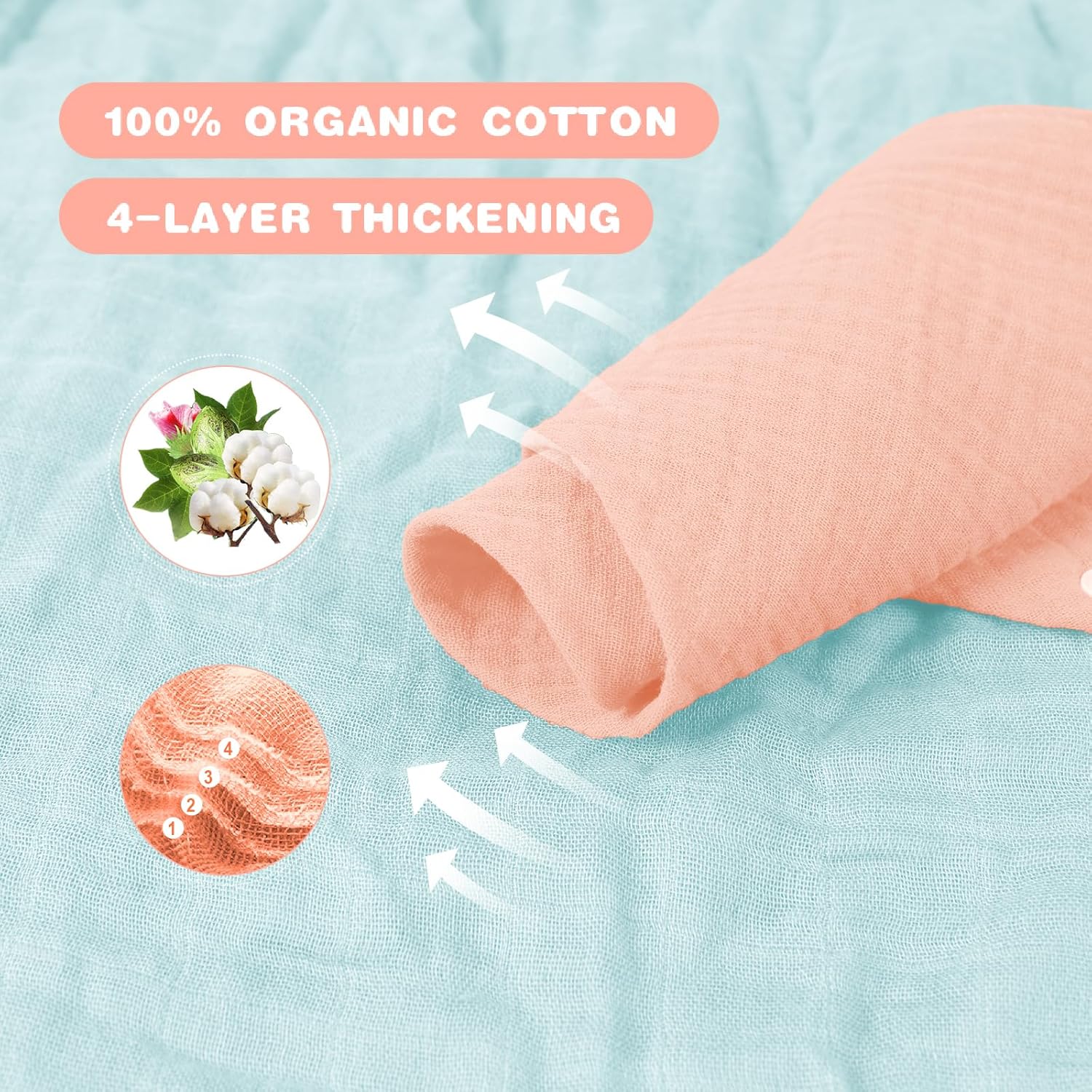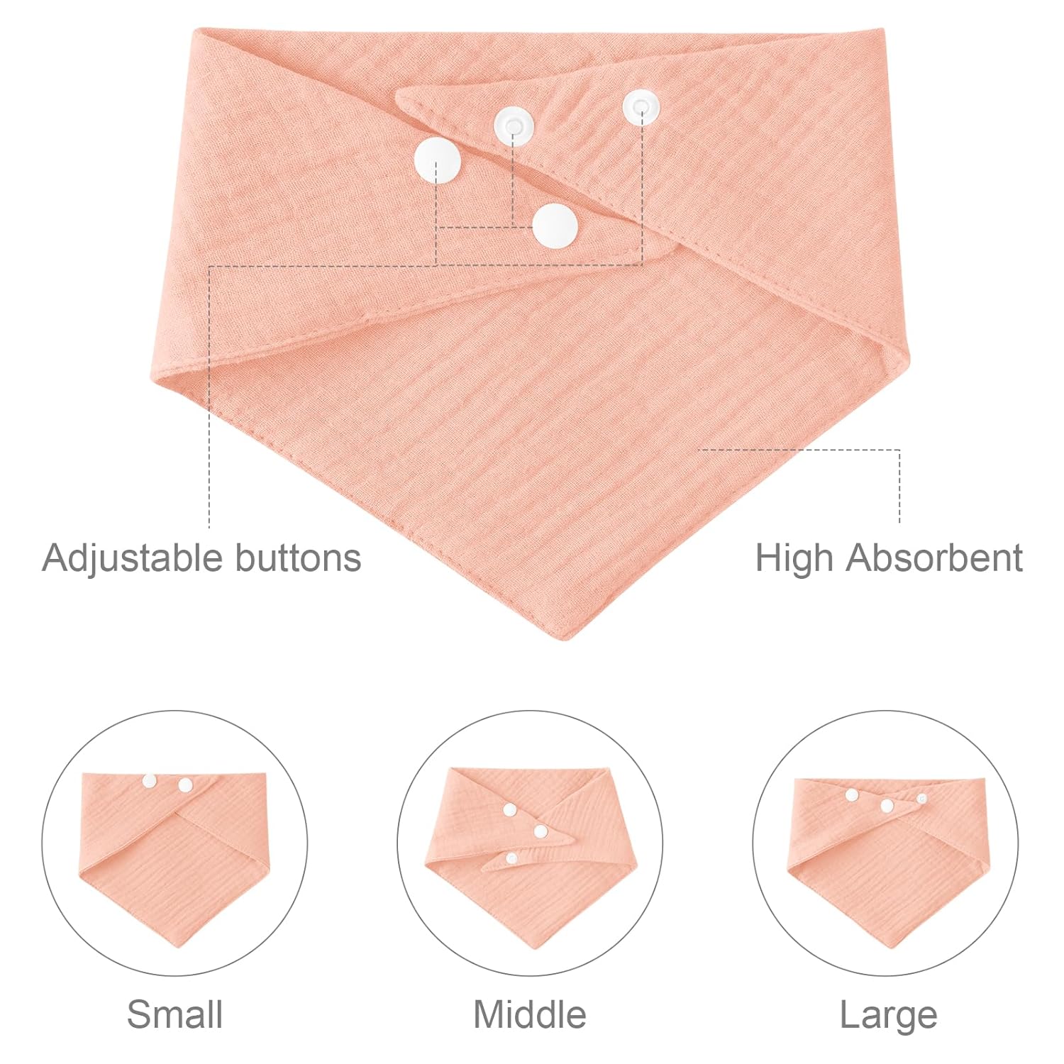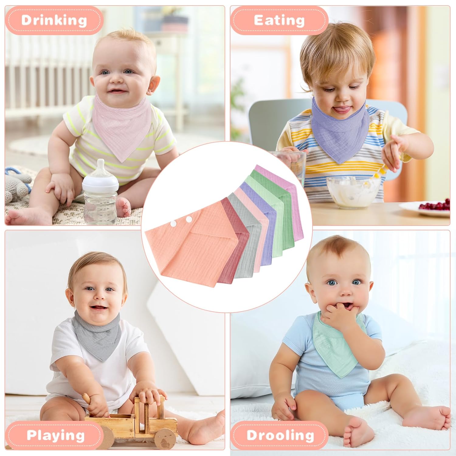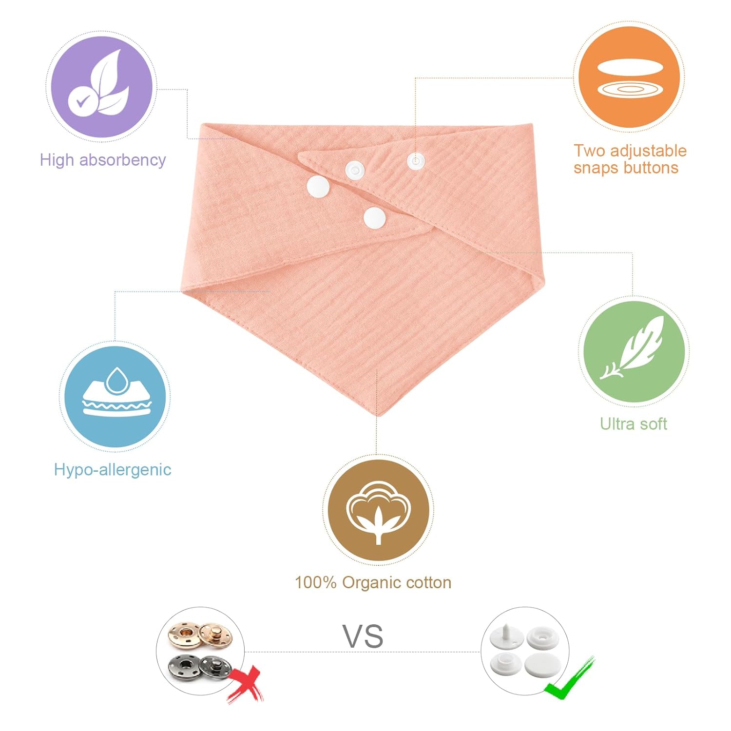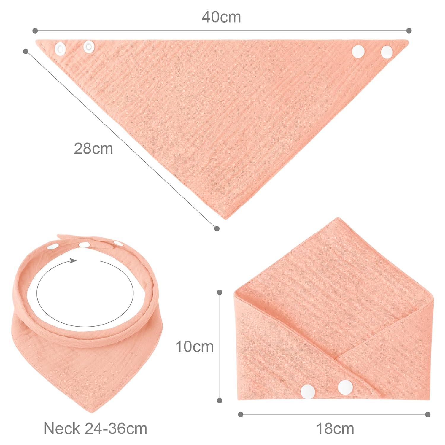 Bavete Muselina Bebelusi Set 8 Bucati, 100% Bumbac Organic, Super Absorbante, Reglabile, Tip Bandana sunt create pentru a oferi confort maxim si protectie zilnica. Materialul moale din bumbac muselina este delicat cu pielea sensibila a bebelusului. Textura respirabila ajuta la mentinerea pielii uscate si previne iritatiile.