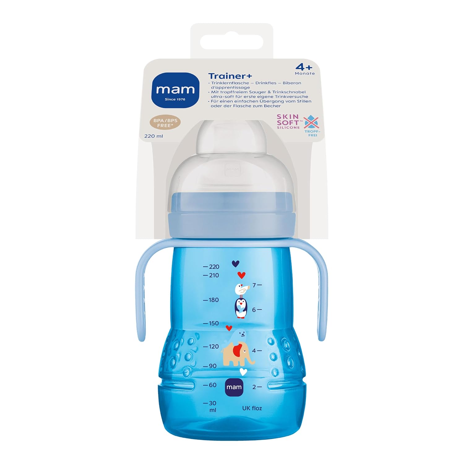 Biberon bebelusi, Mam, Silicon, Albastru, 4m+ este alegerea ideala pentru micutii care incep sa bea singuri si au nevoie de o solutie practica, confortabila si sigura. Conceput special pentru etapa de tranzitie, acest biberon Trainer+ ajuta copilul sa faca trecerea naturala de la san sau biberon la cana, fara stres si fara efort.