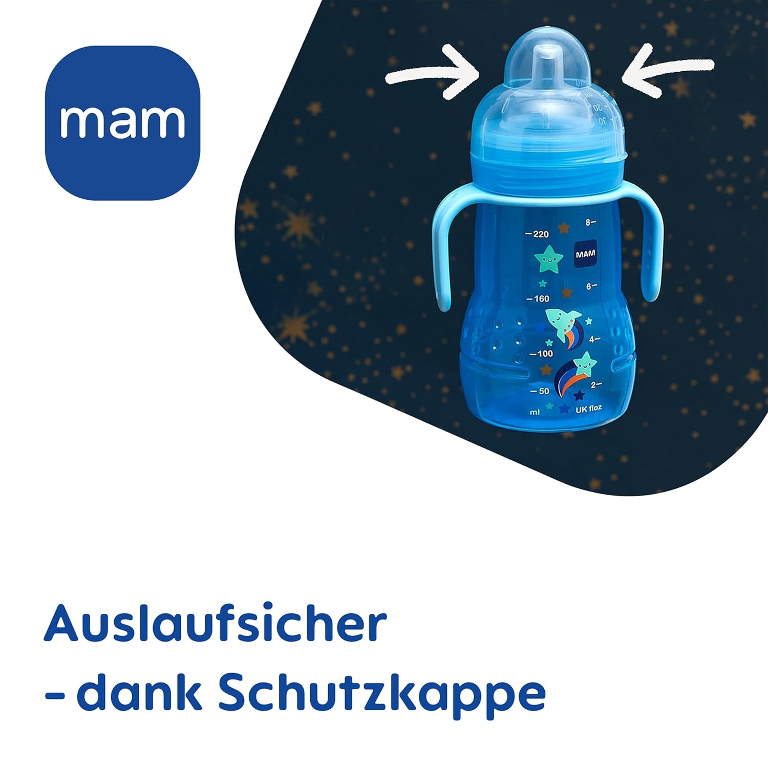 Biberonul MAM Trainer+ 220 ml este creat pentru bebelusii de 4m+ care incep tranzitia de la biberon la cana.