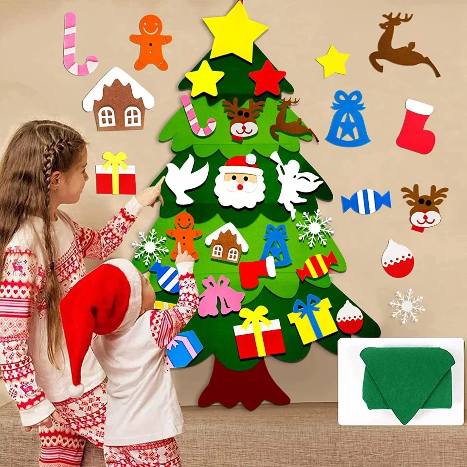 Brad Montessori din Pasla pentru Copii cu 26 Ornamente este alegerea perfecta pentru familiile care doresc un decor festiv interactiv, sigur si educational. Creat pentru micutii curiosi, acest brad din pasla transforma decorarea de Craciun intr-o activitate distractiva, educativa si 100% sigura.