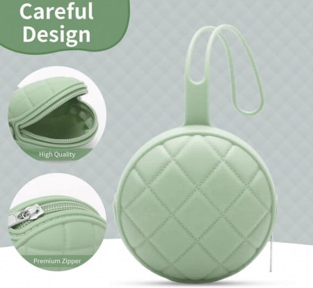 Cutie pentru suzeta, realizata din silicon alimentar moale, cu fermoar din otel inoxidabil 316L. Portabila si multifunctionala, pastreaza suzeta curata si la indemana oriunde.