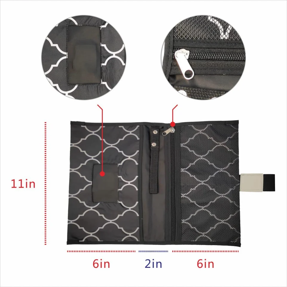 Geanta de Infasat pentru Bebelusi Textil Negru–Alb este solutia ideala pentru parintii care cauta o geanta compacta, bine compartimentata si usor de folosit, oferind intotdeauna acces rapid la toate produsele necesare pentru schimbarea scutecelor.