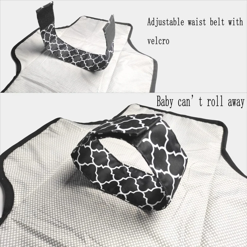 Geanta de Infasat pentru Bebelusi, Textil Negru–Alb, este compacta si perfect compartimentata pentru servetele, scutece si accesorii.