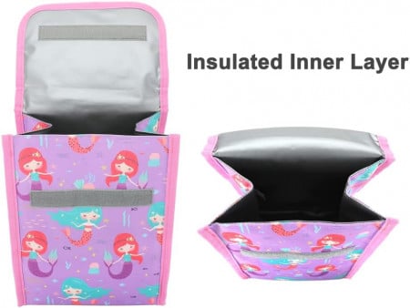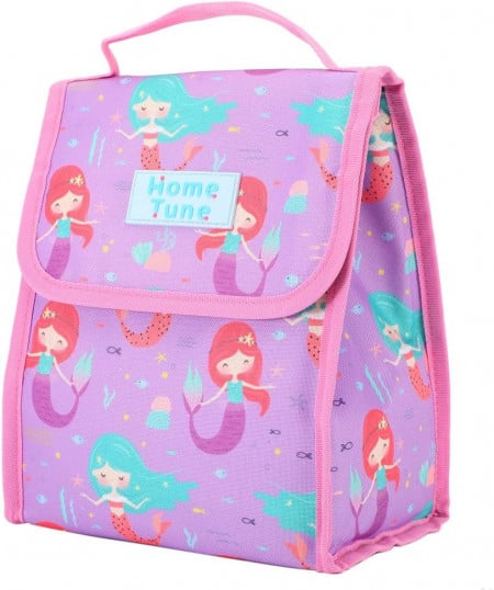 Geanta este decorata cu un design colorat cu sirene. Acest model jucaus este adorat de copii si face ca fiecare pranz sa fie mai distractiv. Este un accesoriu util, dar si plin de personalitate.