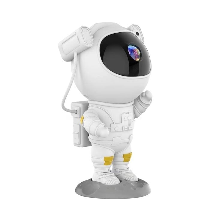 Lampa de veghe pentru copii Proiector de stele, model astronaut, cu rotire 360°, 8 moduri de proiectie, telecomanda, temporizator si reglaje pentru luminozitate si viteza. Creeaza o atmosfera magica de relaxare in camera copilului.