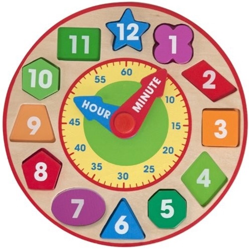 Ceas sortator de forme Melissa and Doug este cadoul perfect pentru copiii curiosi, care vor sa invete prin joaca notiuni esentiale precum timpul, geometria si culorile.