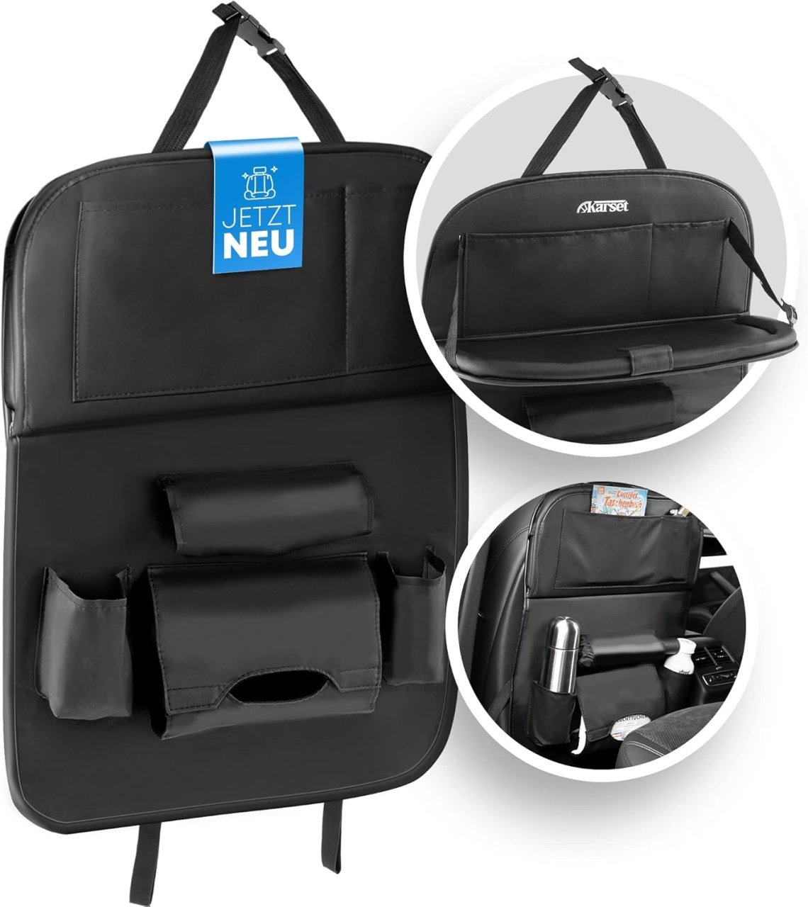 Organizator pentru scaun auto din piele PU, cu 7 buzunare pentru jucarii, gustari, sticle si tableta. Pastreaza masina ordonata, sigura si confortabila in timpul calatoriilor. Usor de instalat, rezistent si ideal pentru familii.