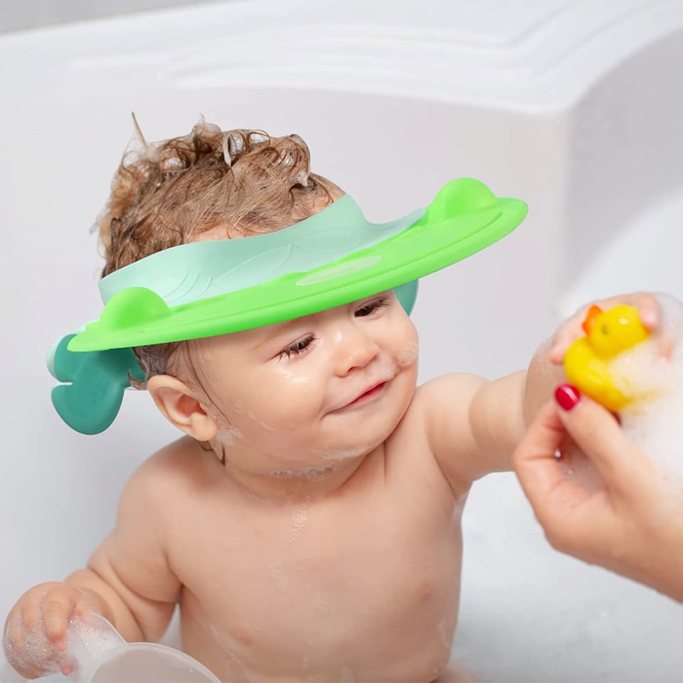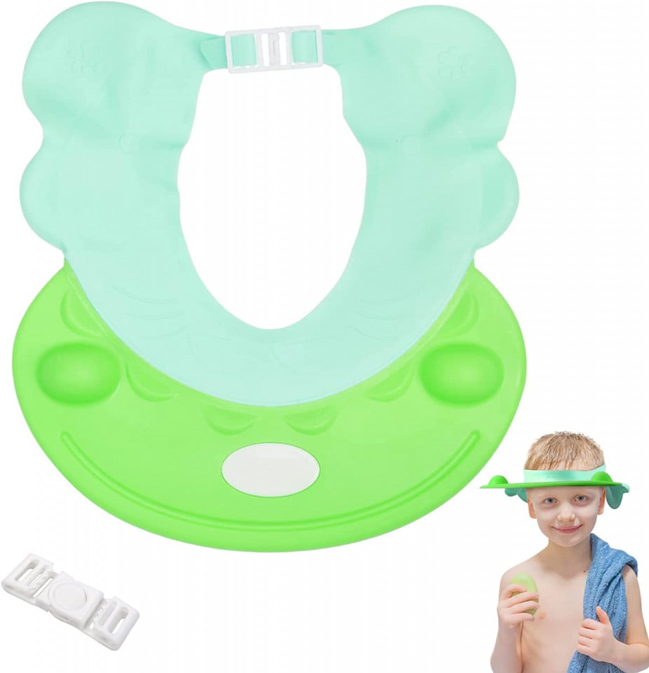 Palarie de dus reglabila pentru copii, realizata din plastic moale si elastic, ideala pentru protejarea ochilor si urechilor in timpul baii. Design jucaus, culori atractive si ajustare usoara pentru o potrivire perfecta la copii peste 6 luni.