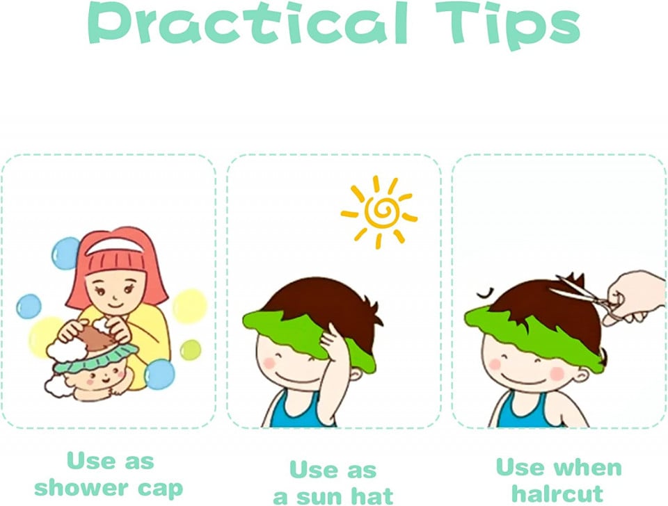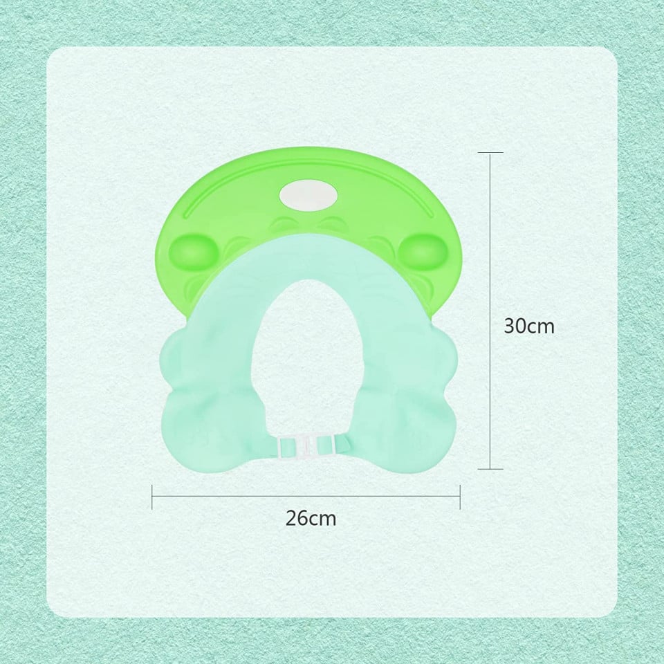 Palarie de dus reglabila pentru copii este prevazuta cu sistem de ajustare, fiind potrivita pentru copii de peste 6 luni. Pe masura ce micutul creste, palaria poate fi setata astfel incat sa asigure aceeasi fixare stabila si protectie eficienta. Dimensiunile de 30 x 26 cm asigura o acoperire optima si un confort crescut.