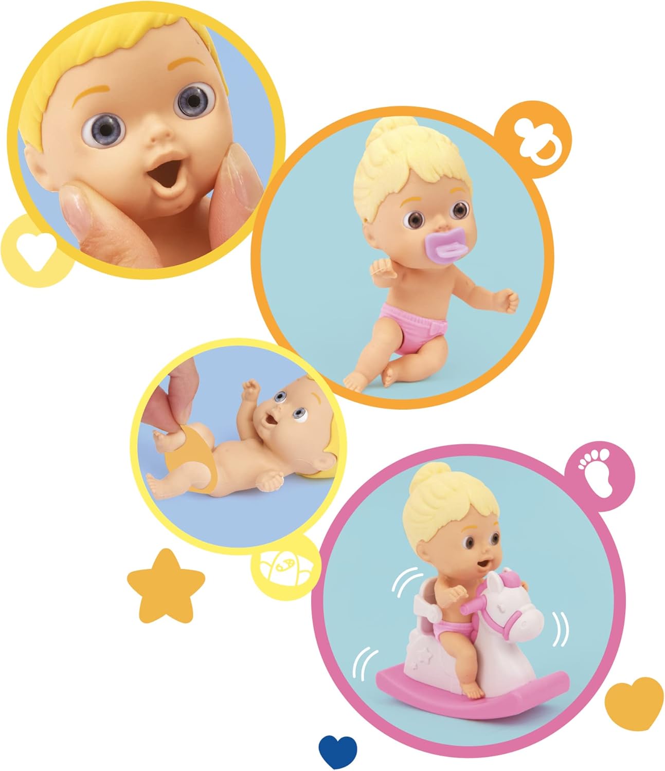 Cicciobello Amicicci este un bebelus adorabil, cu par blond si expresie prietenoasa, care adora sa se joace, sa se legene si sa petreaca timp pe calutul sau balansoar. Prin joaca, copiii invata sa aiba grija, sa fie atenti si responsabili.