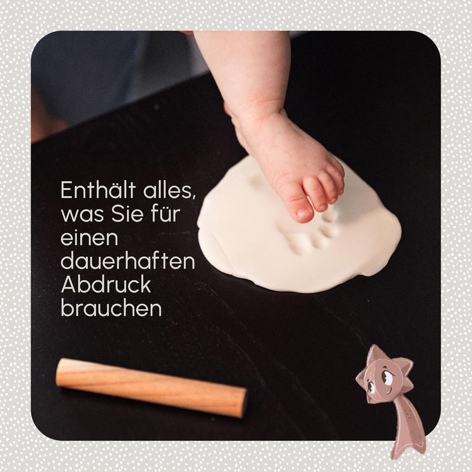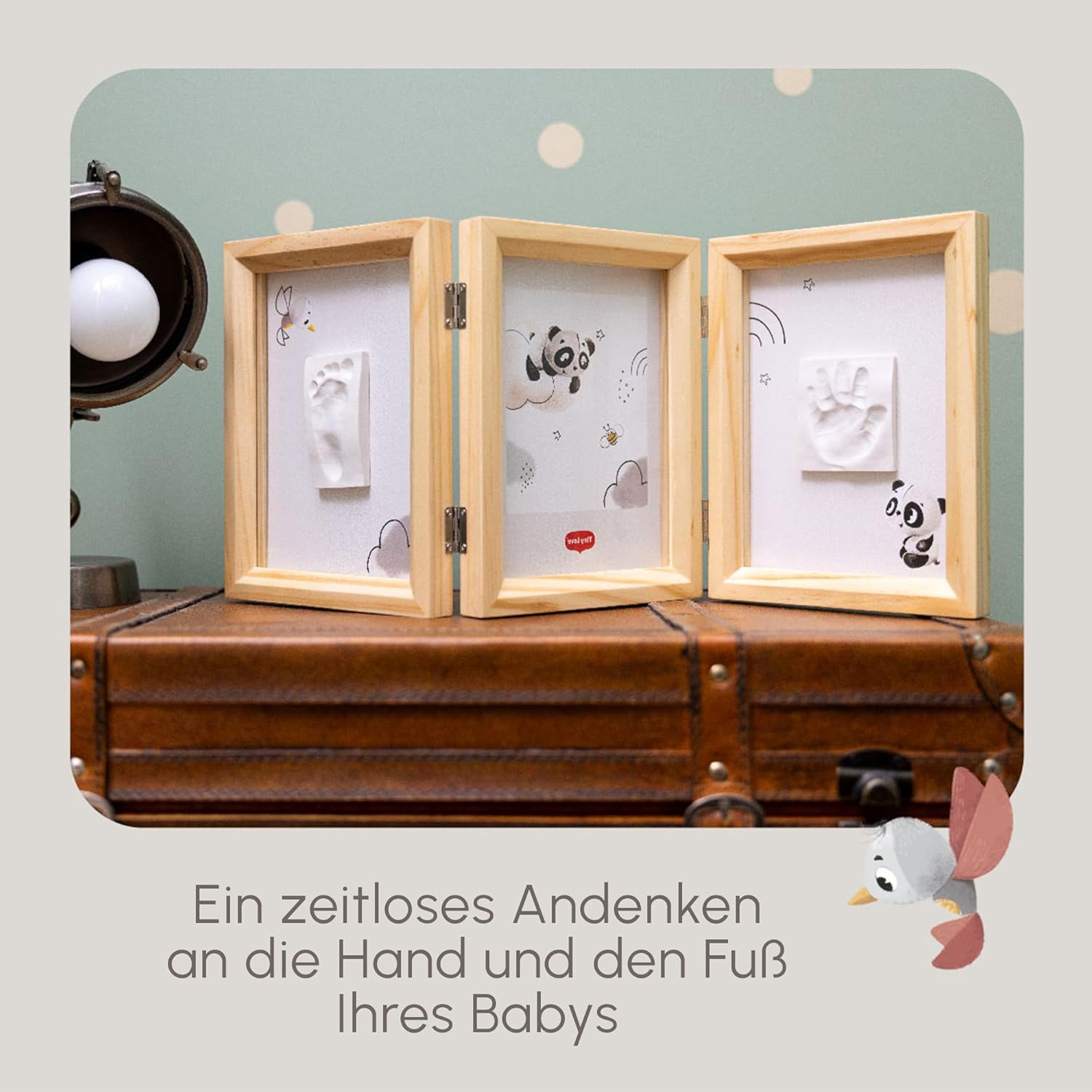 Setul contine lut cu uscare la aer, testat dermatologic si toxicologic. Este sigur pentru pielea sensibila a bebelusului. Rama este solida, rezistenta si eleganta, conceputa pentru a pastra amprentele ani de zile.