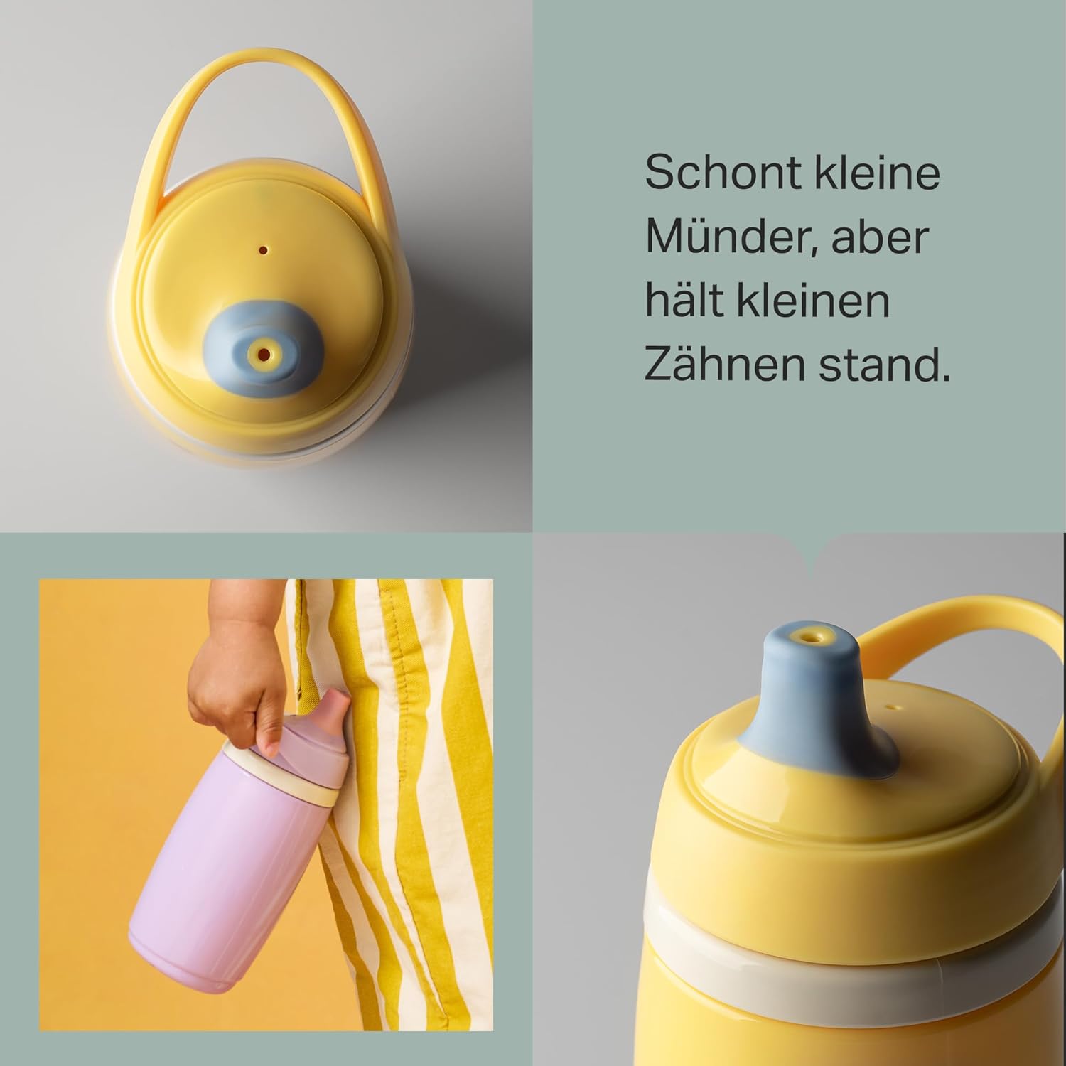 Manerul special proiectat este usor de prins de mainile mici si se ridica atunci cand copilul bea. Acest lucru reduce riscul de varsare si ofera mai multa autonomie celor mici.