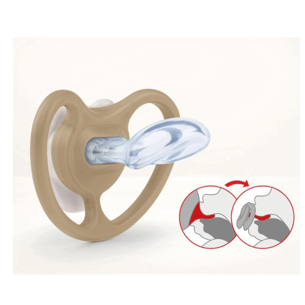 Forma tetinei ajuta la antrenarea muschilor faciali si buzelor, contribuind la dezvoltarea sanatoasa a danturii, a palatului si a maxilarului. Astfel, suzeta devine nu doar un aliat in calmarea copilului, ci si un sprijin activ in cresterea armonioasa.