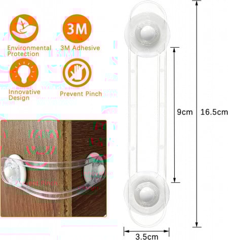 Incuietorile au lungime reglabila, potrivindu-se usor pe frigider, cuptor, dulap sau sertar, in functie de nevoile casei.