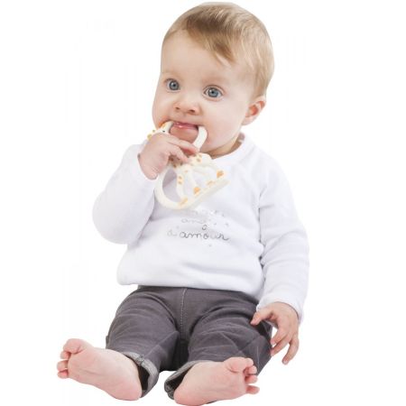 Sophie la girafe Inel dentitie din cauciuc 100% natural, sigur si usor de apucat. Calmeaza gingiile sensibile si stimuleaza simturile bebelusului inca din primele luni.